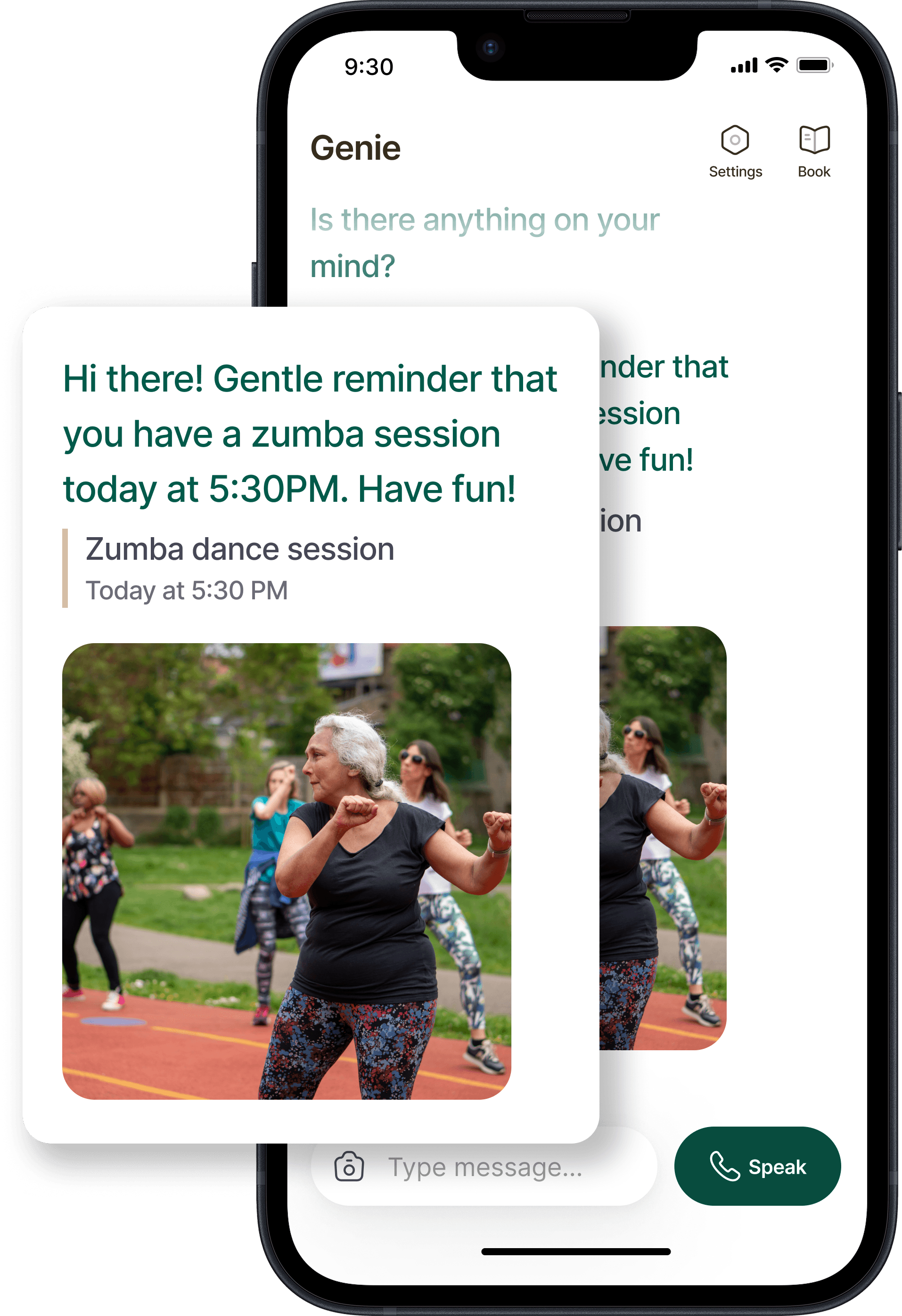 Genie uses its knowledge of seniors to suggest activities that suit their preferences and physical capabilities.